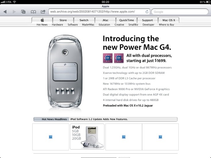 E se Apple volesse dirci qualcosa di più concreto? Di solito l’interfaccia del sito istituzionale ha sempre ricalcato quella di Mac OS: la barra di navigazione grigia fu introdotta per l’arrivo di Leopard dopo anni di implementazione della barra dei menu a tab che ricalcava lo stile Aqua adottato da Mac OS fino alla relase 10.4.