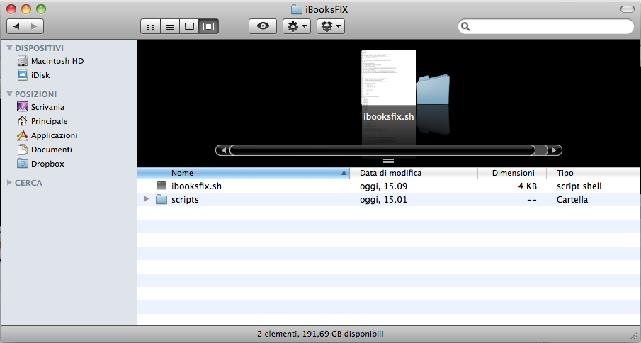 2. Troveremo all’interno il file “ibookfix.sh” e la cartella “script”.