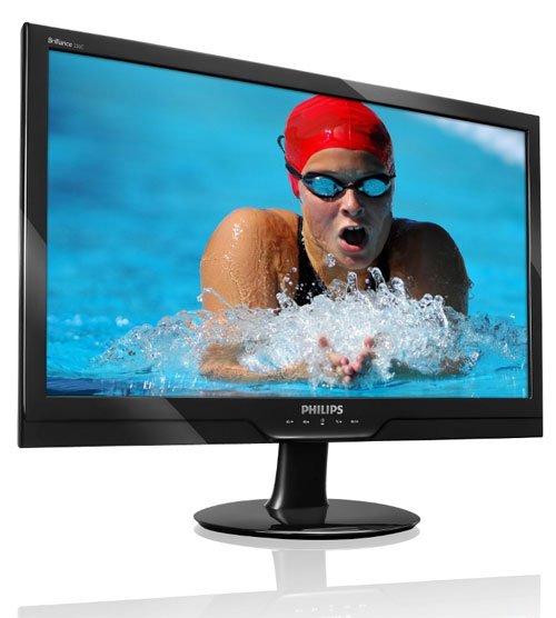 Il display è un LCD retroilluminato a LED (e questo permette di ridurre lo spessore dello chassis), con una risoluzione da FullHD – 1080p e una superficie opaca: la mancanza del pannello in vetro anteriore rende dei colori meno brillanti, ma per un uso dedicato alla grafica da stampa professionale è molto più indicato in quanto i colori riprodotti sono più fedeli alla resa di stampa. Il monitor Philips si presta bene anche per la visione di film in FullHD e per le normali operazioni di ufficio, regalandoci un’ampia superficie su cui disporre le nostre finestre. Con un MacBook Pro Unibody Early 2009, ho ravvisato uno strano problema: scorrendo un testo nero su fondo grigio il monitor genera una scia bianca che si arresta solo alla fine dello scorrimento. Con i videogiochi, invece, è più indicato un monitor con schermo lucido. Unico difetto estetico che ho riscontrato è il posizionamento delle porte vga e dvi: essendo perpendicolari alla superficie, i connettori dei cavi sporgono di molto, rovinando il bel design del monitor o costringendoci a tenerlo ad una notevole distanza dal muro.