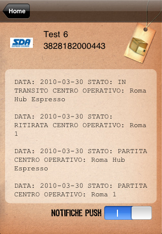 Quest’app oltre a fornire un resoconto testuale degli stadi della spedizione, ci avverte tramite notifiche push degli aggiornamenti. Quando il pacco sarà consegnato apparirà sul record dell’elemento il timbro “consegnato” risultando così molto rapida nella lettura.