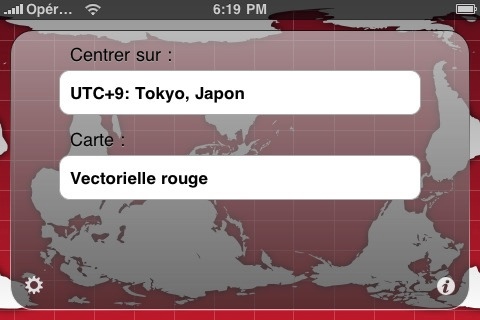 Facendo tap sulla classica icona info è possibile settare la zona su cui centrare la mappa e la modalità di vista. Attraverso la prima possiamo sia centrare la vista su una fascia in particolare o, optando per “manualmente”, spostare la mappa a proprio piacimento con lo scorrimento a due dita. La seconda ci permette di scegliere tra sei tipi di immagine. Tra i più interessanti ricordiamo la visualizzazione della terra con le zone illuminate e non dell’orario attuale.