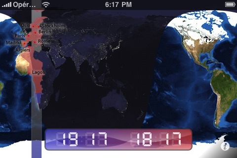 Un primo tap farà apparire un riquadro che mostrerà l’orario del fuso selezionato distinguendo anche tra due zone interne al fuso, con riferimento facilmente intuibile grazie alle due differenti colorazioni. Con il semplice scorrimento della cartina con il dito, il riquadro in basso aggiornerà istantaneamente l’orario. In questo modo è sempre possibile consultare gli orari dei vari fusi, tenendo sempre sott’occhio quello locale.