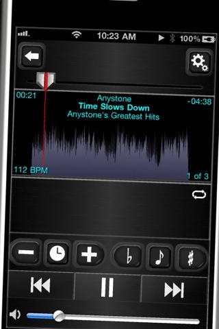 Anytune permette di fare tutto questo in maniera molto semplice. L’app si interfaccia con la libreria musicale e selezionato il brano lo carica e ne presenta il grafico.
