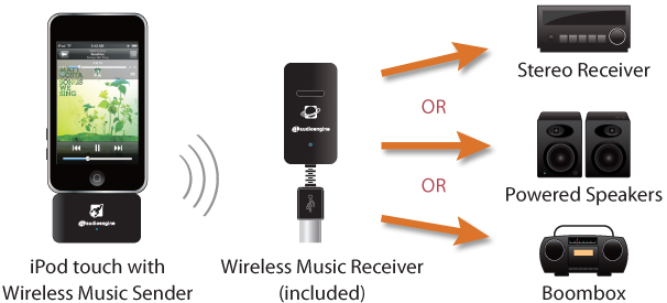 L’Audioengine W2 si compone di un trasmettitore che invia l’audio generato dai dispositivi della mela, dal connettore dock in WiFi, ed un ricevitore che con il suo connettore jack lo invia ad un qualsiasi impianto dotato di ingresso audio.