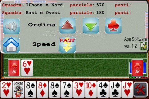 Il gioco si svolge orientatoo in landscape. Le nostre carte sono disposte nella parte bassa dello schermo e possono essere organizzate per seme o per valore ascendente o discendente.
