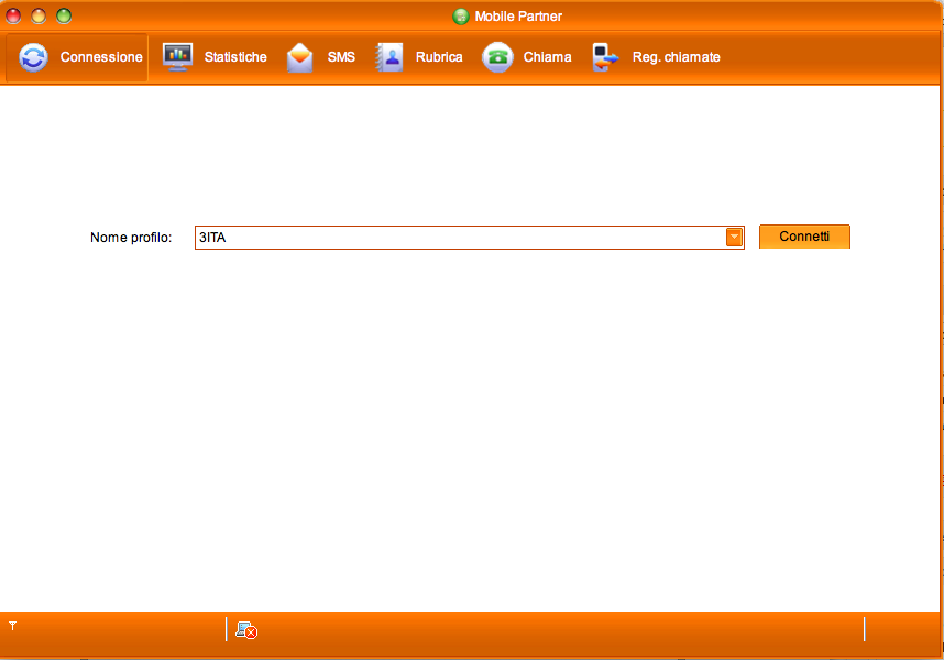 Selezione del profilo per la connessione (rilevato in automatico con una SIM inserita nella chiavetta)