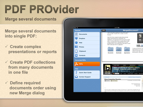 | Trasforma in formato PDF documenti, pagine web, foto, contatti, appunti. | |