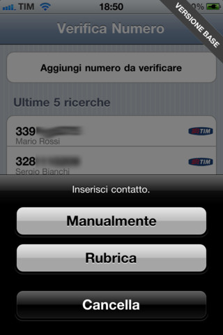L’app in versione base consente di conoscere l’operatore di un numero per volta, digitandolo manualmente dal tastierino numerico o selezionandolo dalla rubrica.