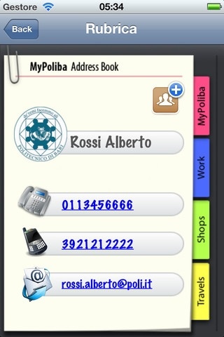 In “Altro” sono reperibili i contatti dei professori con la possibilità di salvarli nella rubrica; e una serie di docuenti utili alla vita universitaria, tra cui il calendario didattico.