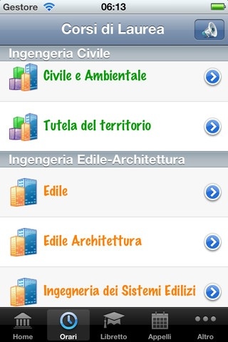Dalla sezione orari, organizzati per Corso di laurea, sono presenti tutti gli orari delle lezioni, fin ad ora reperibili solo sul sito internet. Selezionato quello di nostro interesse ed identificato come preferito, sarà immediatamente raggiungibile dalla pagina Home, attraverso l’apposita icona.