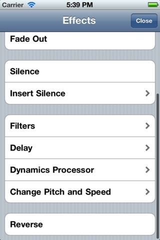 Peculiarità di quest’app è l’estrema facilità di manipolazione e navigazione all’interno del suono. Nella parte alta della schermata viene mostrata la posizione corrente del cursore o la durata della selezione. Per giungere a quest’ultima ci viene incontro un’ottima gestione del multitouch; infatti mentre con un dito estendiamo la selezione, con l’altro possiamo spostarci in avanti ed indietro; una volta raggiunto l’inizio o il termine della traccia possiamo ancora fare lo stesso non correndo così il pericolo di tralasciare nemmeno una frazione di suono.