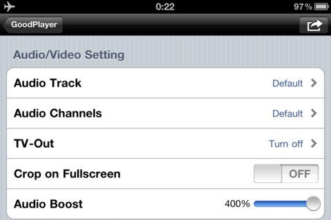 GoodPlayer è localizzata in: Italiano, Arabo, Bokmål, Norvegese, Cinese, Ceco, Danese, Olandese, Inglese, Finlandese, Francese, Tedesco, Greco/a, Ebraico, Giapponese, Coreano, Persiano, Polacco/a, Portoghese, Russo/a, Slovacco, Spagnolo, Svedese, Turco; è compatibile con iPhone 3GS, iPhone 4, iPhone 4S, iPod Touch (terza generazione), iPod touch (4a generazione) e iPad. Richiede l’iOS 4.0 o successivi.
