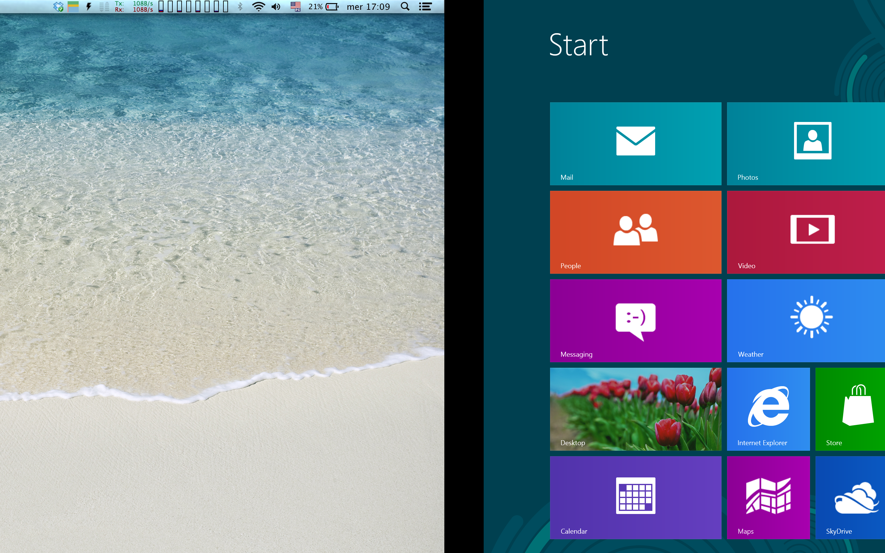 Sia che si lavori con la schermata classica, che con la nuova, se la modalità di visualizzazione è impostata su “schermo intero”, per passare da un SO all’altro è sufficiente passare da una scrivania all’altra, come con i vecchi “spaces”. In alternativa Windows può essere eseguito come una normale applicazione e quindi in una finestra dedicata. La modalità più interessante però è la Coherence.