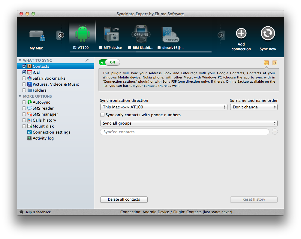 Tutto questo, ed altro, è possibile ottenerlo grazie a SyncMate, intervenendo opportunamente sulle impostazioni.