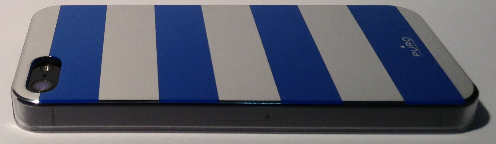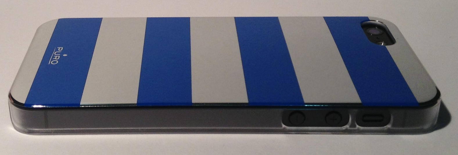 La cover protegge il retro e i lati del vostro dispositivo: avremo un foro per la fotocamera sul posteriore e due fori per i tasti del volume e lo swich per la vibrazione. La parte superiore ed inferiore del dispositivo rimarranno invece scoperte, tuttavia grazie alla conformazione della cover che arriva a proteggere gli angoli del dispositivo avremo una protezione più completa di altre custodie di questo tipo. I bordi risultano essere leggermente più alti del dispositivo per evitare che (ad iphone capovolto) lo schermo tocchi direttamente la superficie su cui è adagiato. Il motivo posteriore di questa cover è a strisce colorate e a specchio alternate, mentre le bande laterali risultano essere di una plastica trasparente opaca lasciando così intravedere il dispositivo stesso.