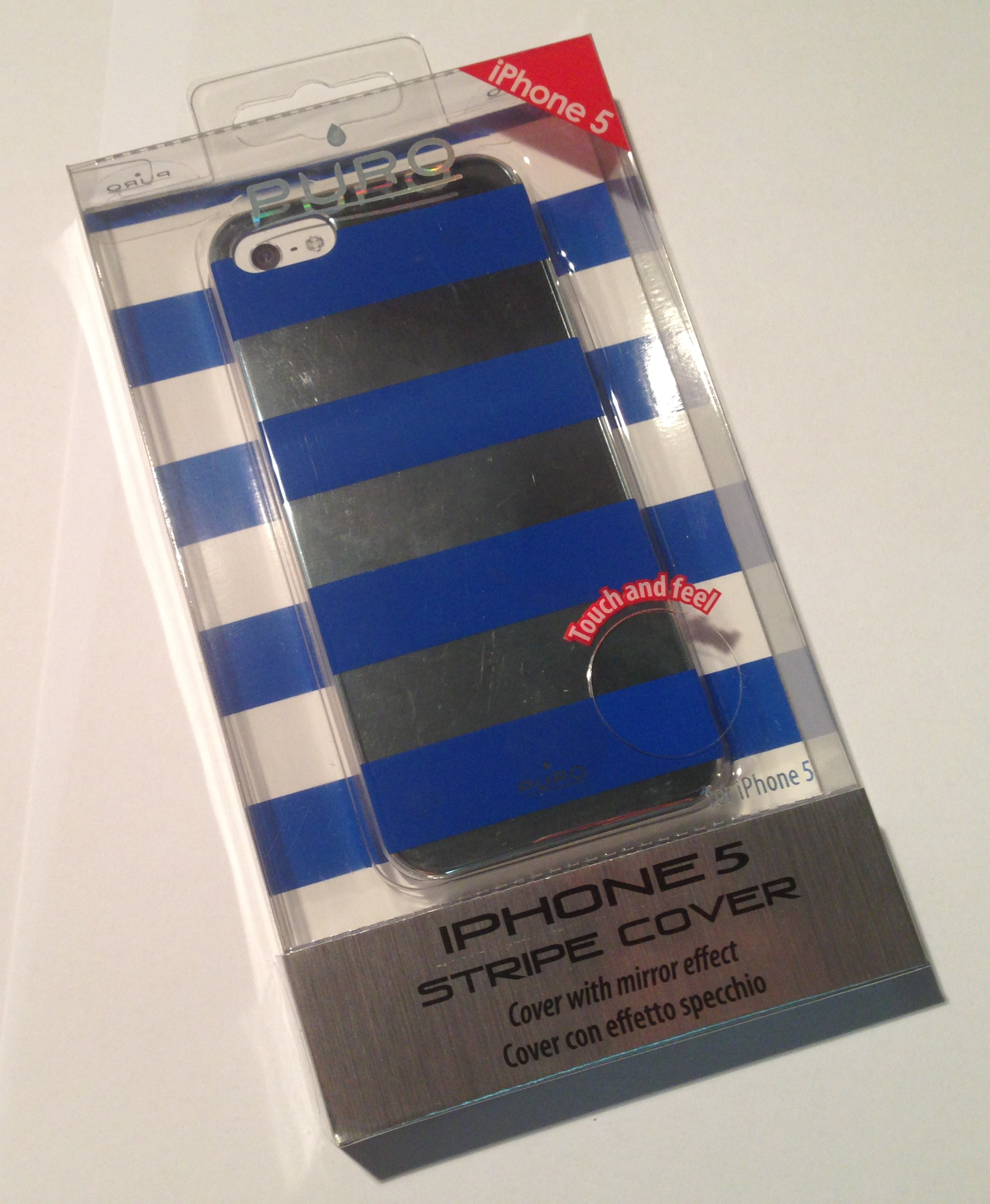 La scatola è comune a tutti gli altri accessori Puro: in primo piano vi è la cover con la possibilità di toccarla grazie al pratico foro “touch and feel” che introduce il produttore. La cover tuttavia risulta essere protetta da un film onde evitare danni ancor prima dell’acquisto. Non troveremo alcuna pellicola all’interno della scatola stessa (un peccato, perché le pellicole Puro sono di ottima qualità).