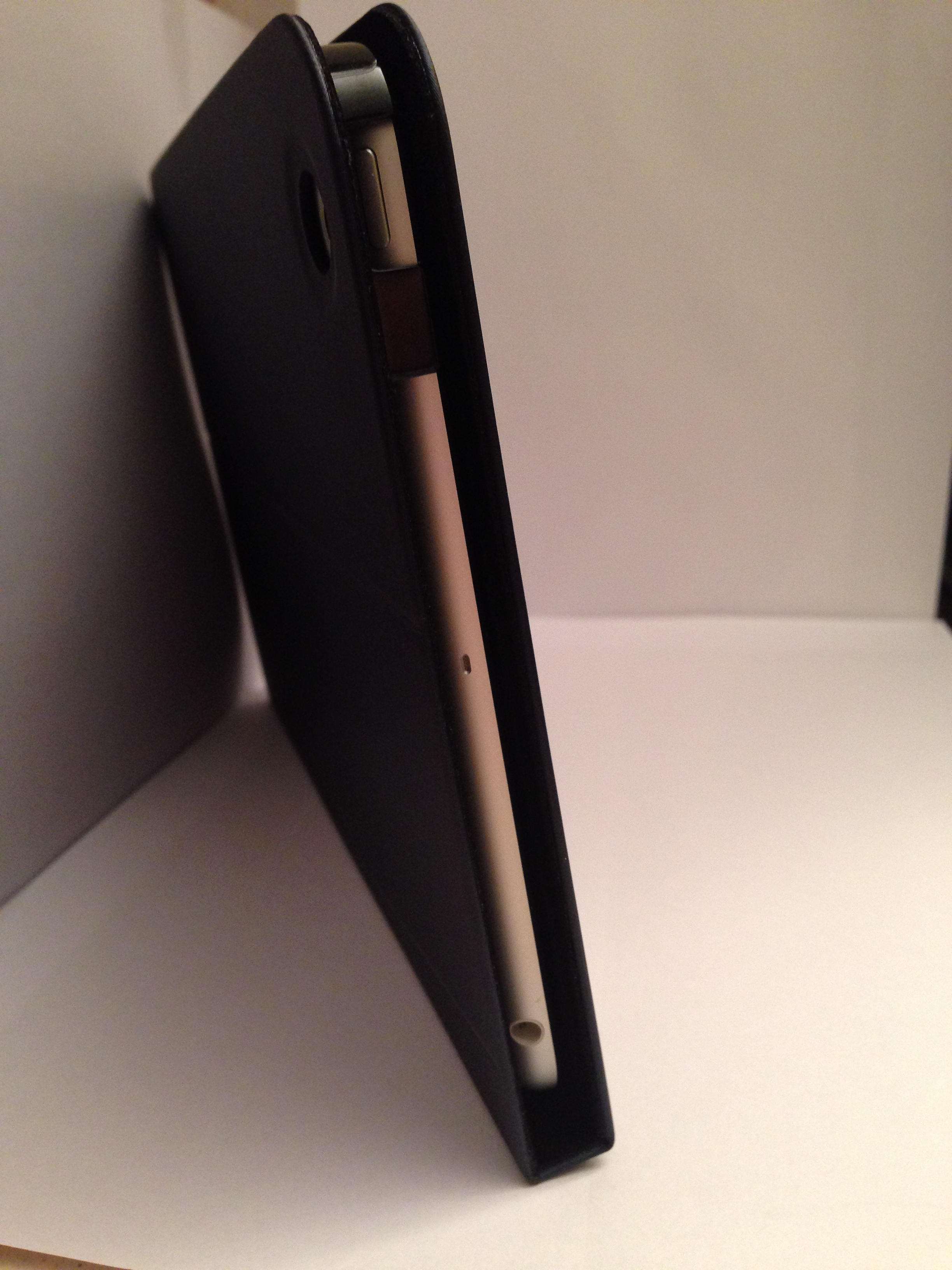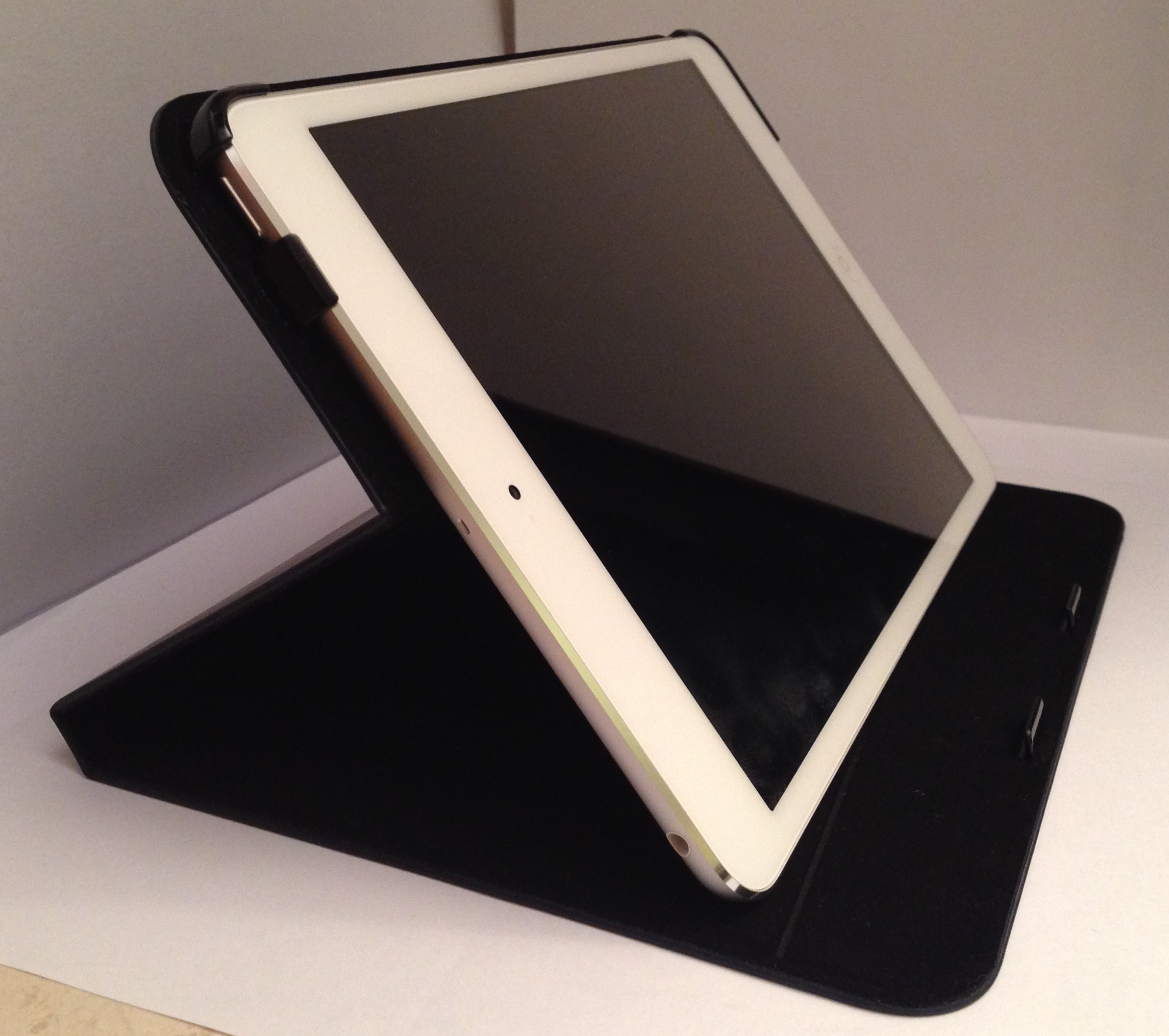 Risolto il discorso dell’imballo, passiamo a verificare la bontà del nostro Hard Folio. È una cover booklet che in realtà non è perfettamente delle dimensioni del dispositivo, ma è più grande di qualche millimetro: questo per proteggere al meglio il vostro iPad che si aggancerà alla custodia per mezzo di soli 4 sostegni, uno dei quali in gomma per permettere di posizionare il dispositivo in varie angolazioni. La parte frontale della custodia è totalmente rigida, mentre la parte posteriore, pur mantenendo la stessa rigidità, presenta una piccola scanalatura che vi permetterà di posizionare il dispositivo in infinite angolazioni.