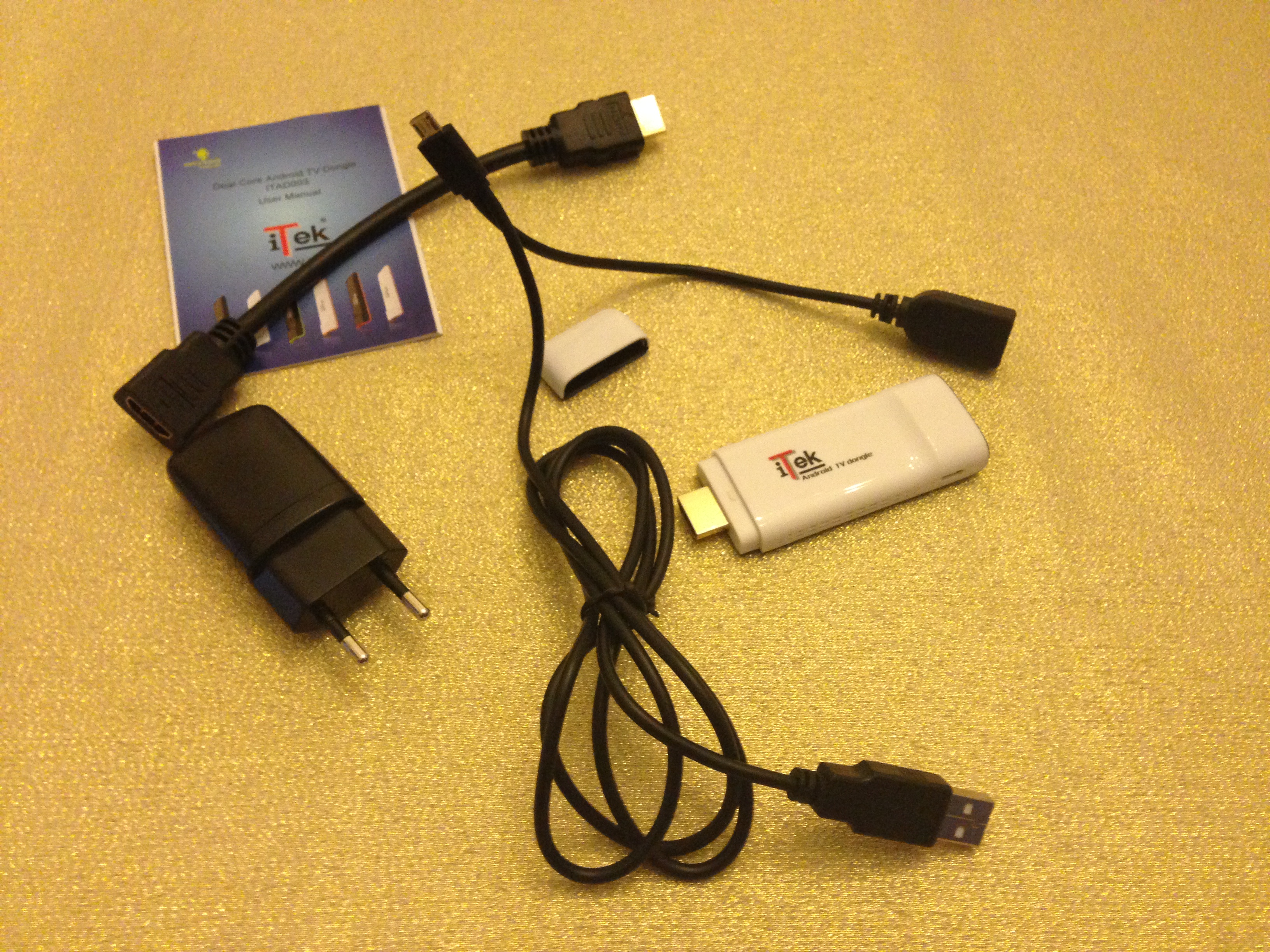 Nella scatola troviamo il Tv Dongle, il cavo microusb-usb-otg, l’alimentatore usb e il cavetto di prolunga hdmi.