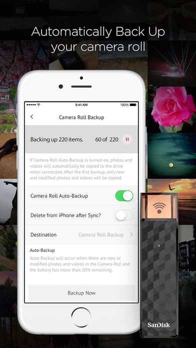 L’importanza che ha per SanDisk quest’ultima funzionalità, si evince dalla posizione di rilievo che il “Backup Rullino fotocamera” ha all’interno dell’app dedicata “Connect Drive”, dove appare come prima voce del menù principale. Ciò accade proprio per l’attenzione dell’azienda a quanto accennato in fase introduttiva. Grazie a questa funzionalità è possibile diminuire sensibilmente lo spazio utilizzato sul proprio dispositivo, grazie all’opzione che consente di eliminare gli scatti una volta trasferiti.